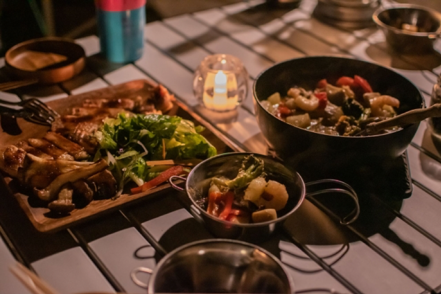 キャンプ場では、バーベキューや鍋料理が人気です。